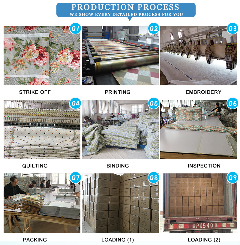 Als een van de beste OEM-fabrieken van China in de huishoudtextielindustrie, kan cxmicrotex verschillende aangepaste services voor beddengoed accepteren, zoals bedrukte quilts, patchwork-quilts, borduurquilts, spreien, pin-sonic-quilts, steengewassen quilts, dekbedovertrekken, dekens, douche gordijnen, volant enzovoort. Neem gerust contact met ons op, wij geven u de beste prijs.